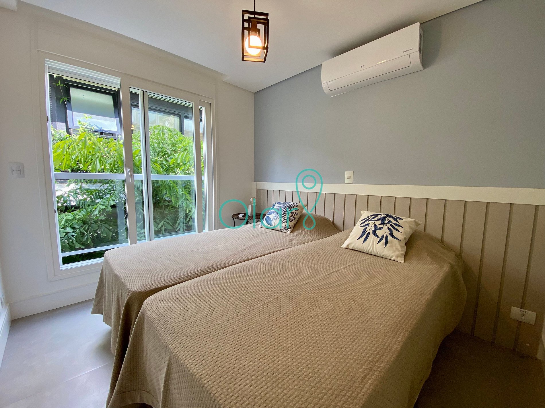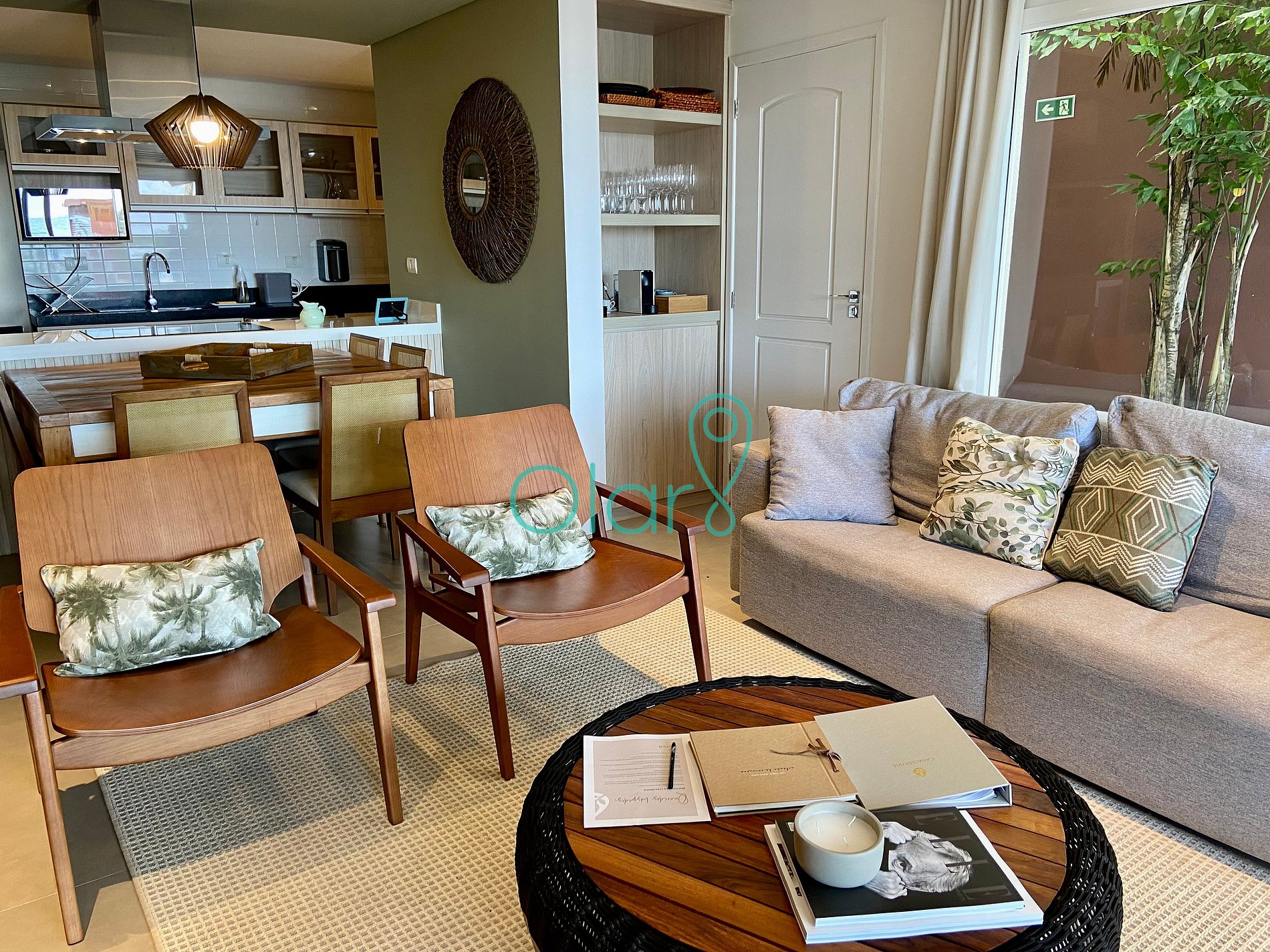 Sala: ar condicionado, mesa de jantar, smartTV, sofá 4 lugares, 2 poltronas.