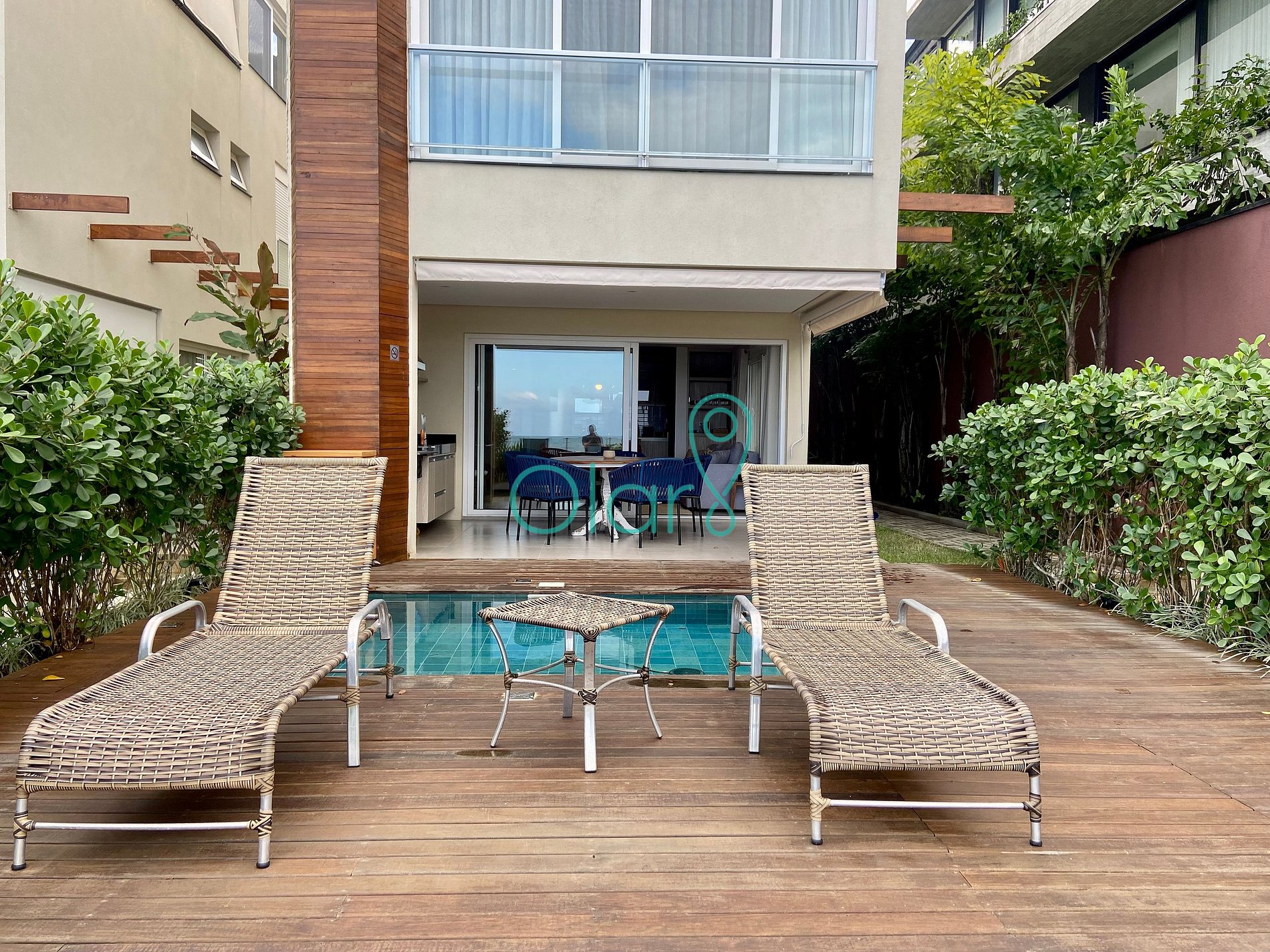 Possui um deck com área gourmet e piscina privativa.