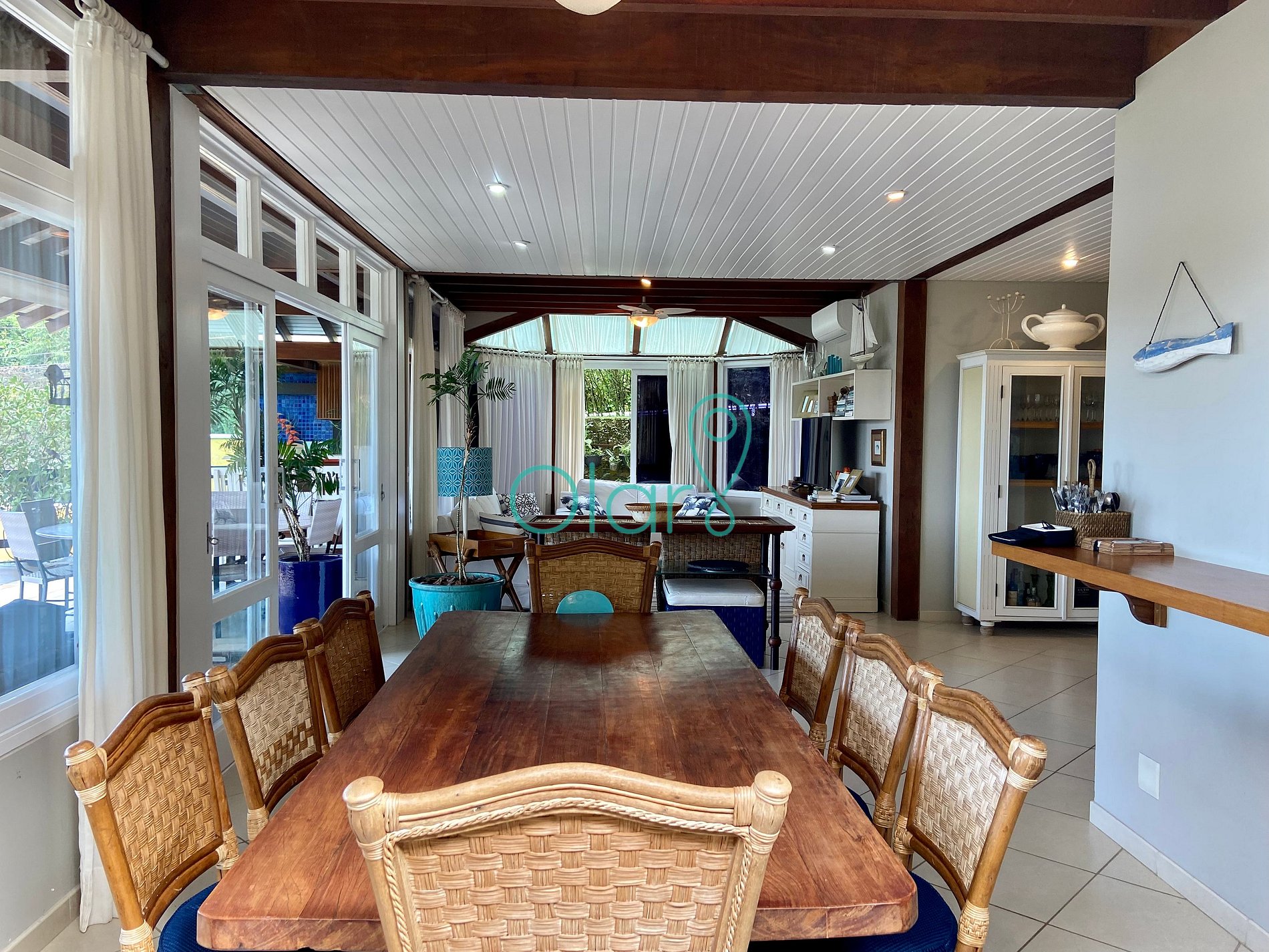 Sala de Jantar: ventilador de teto e mesa com 8 lugares