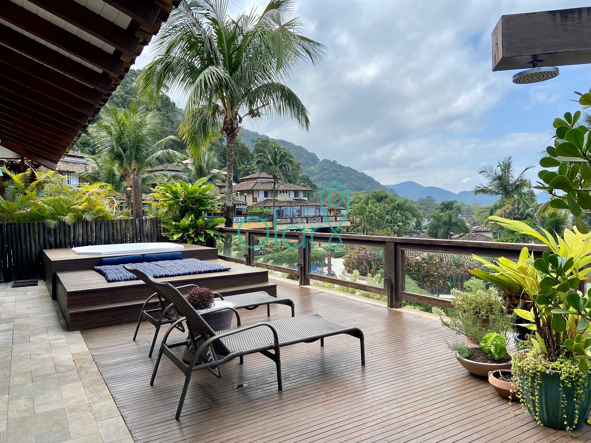 - Deck com vista para o mar com uma jacuzzi, futon e duas espreguiçadeiras.