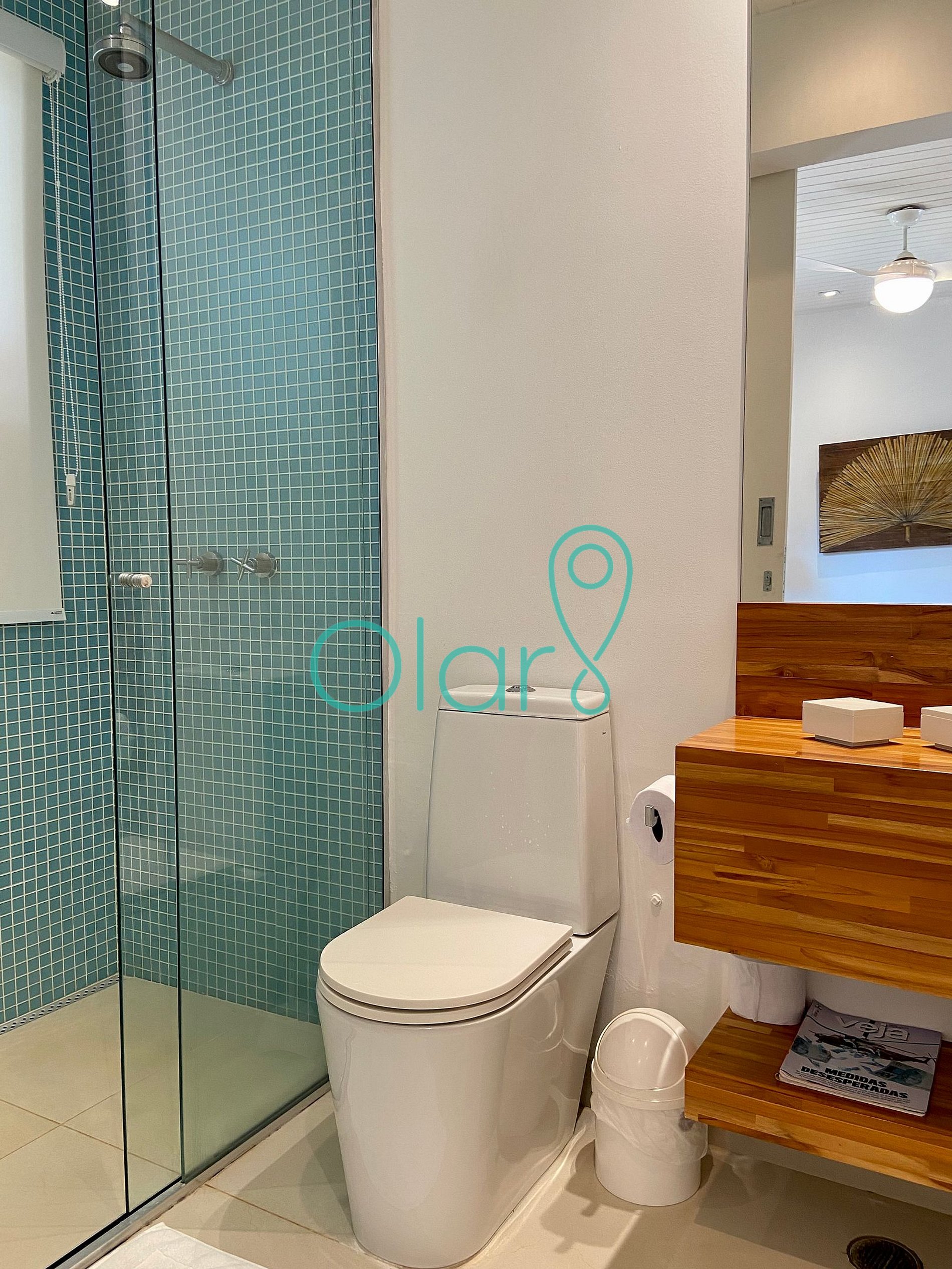 Além dos banheiros que atendem as quatro suítes, possui um banheiro na sala, totalizando 5 banheiros ao todo na casa.