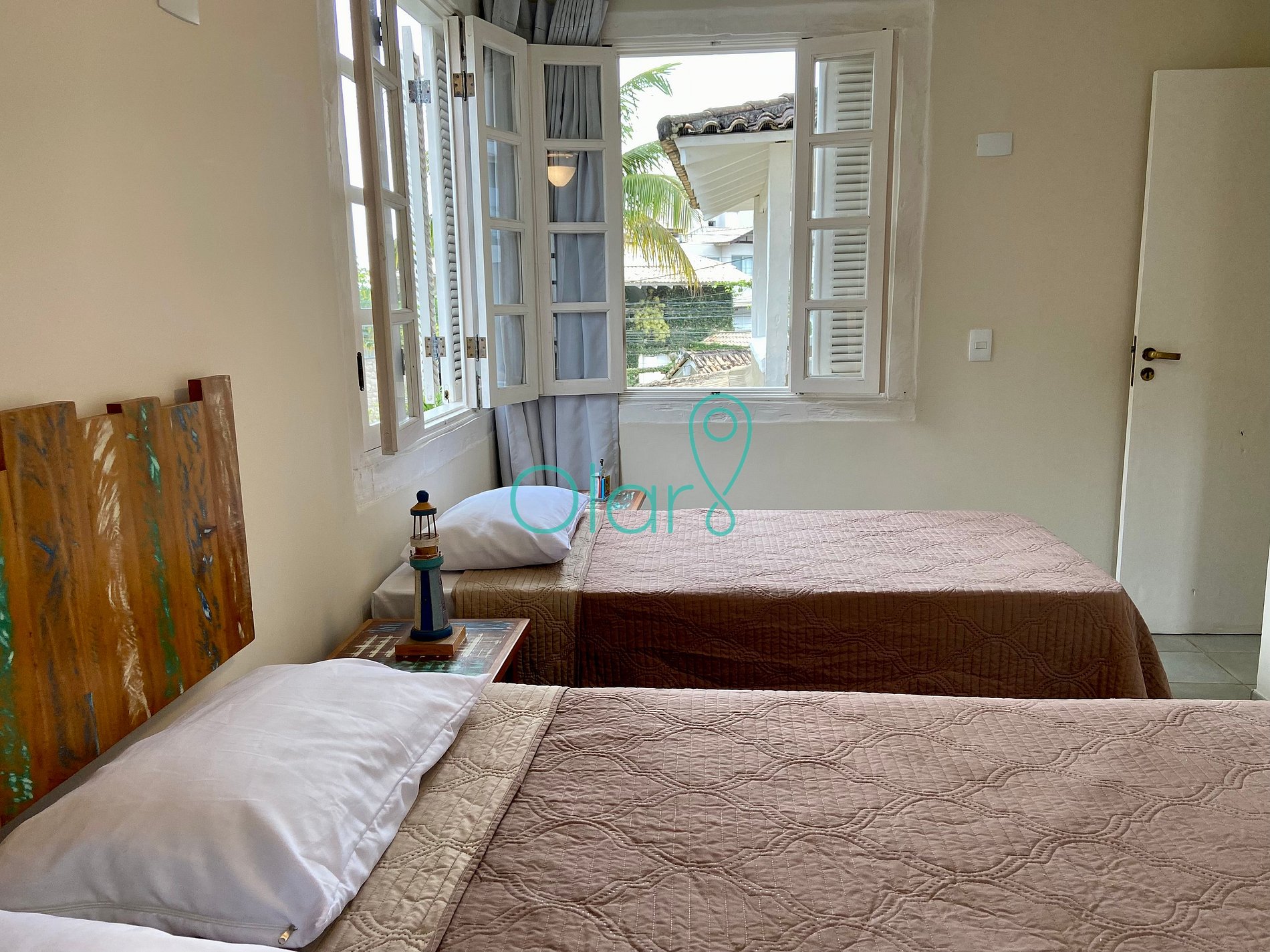 Possui 7 quartos, sendo dois no térreo com um banheiro compartilhado e 5 suítes no pavimento superior.