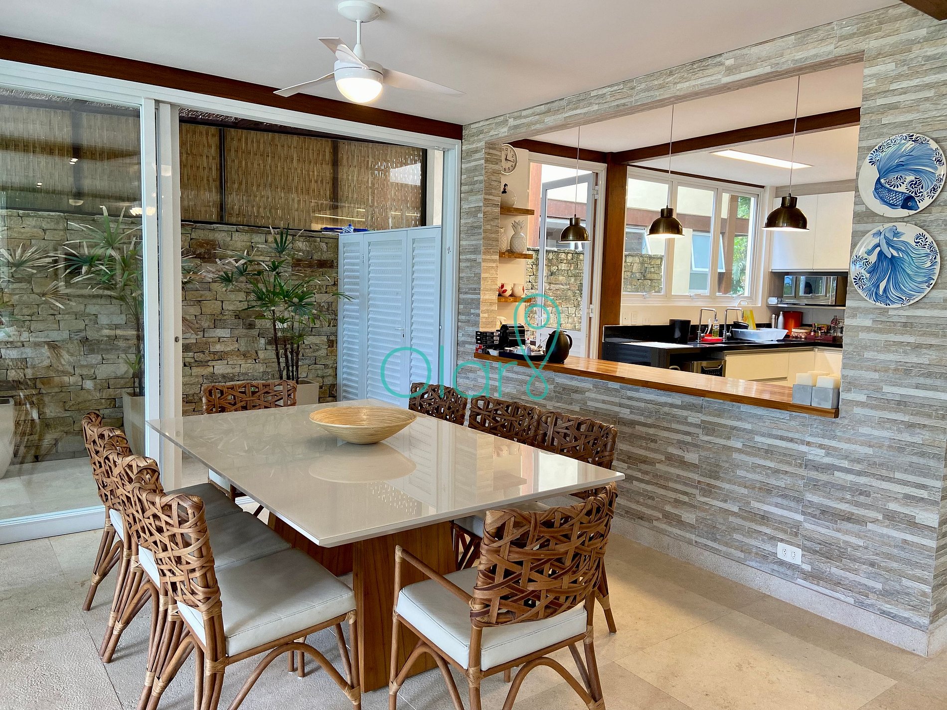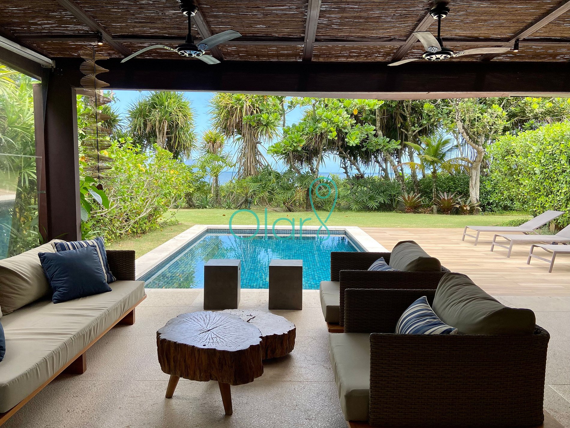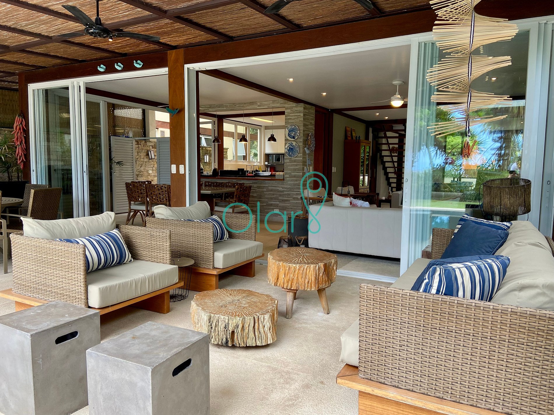 Todas as 4 suítes possuem ar condicionado e a sala e varanda são equipadas com ventiladores de teto.