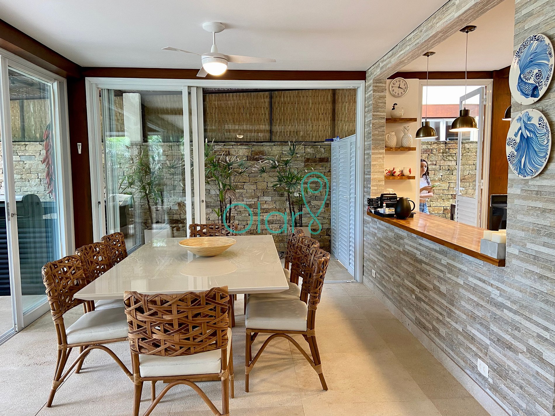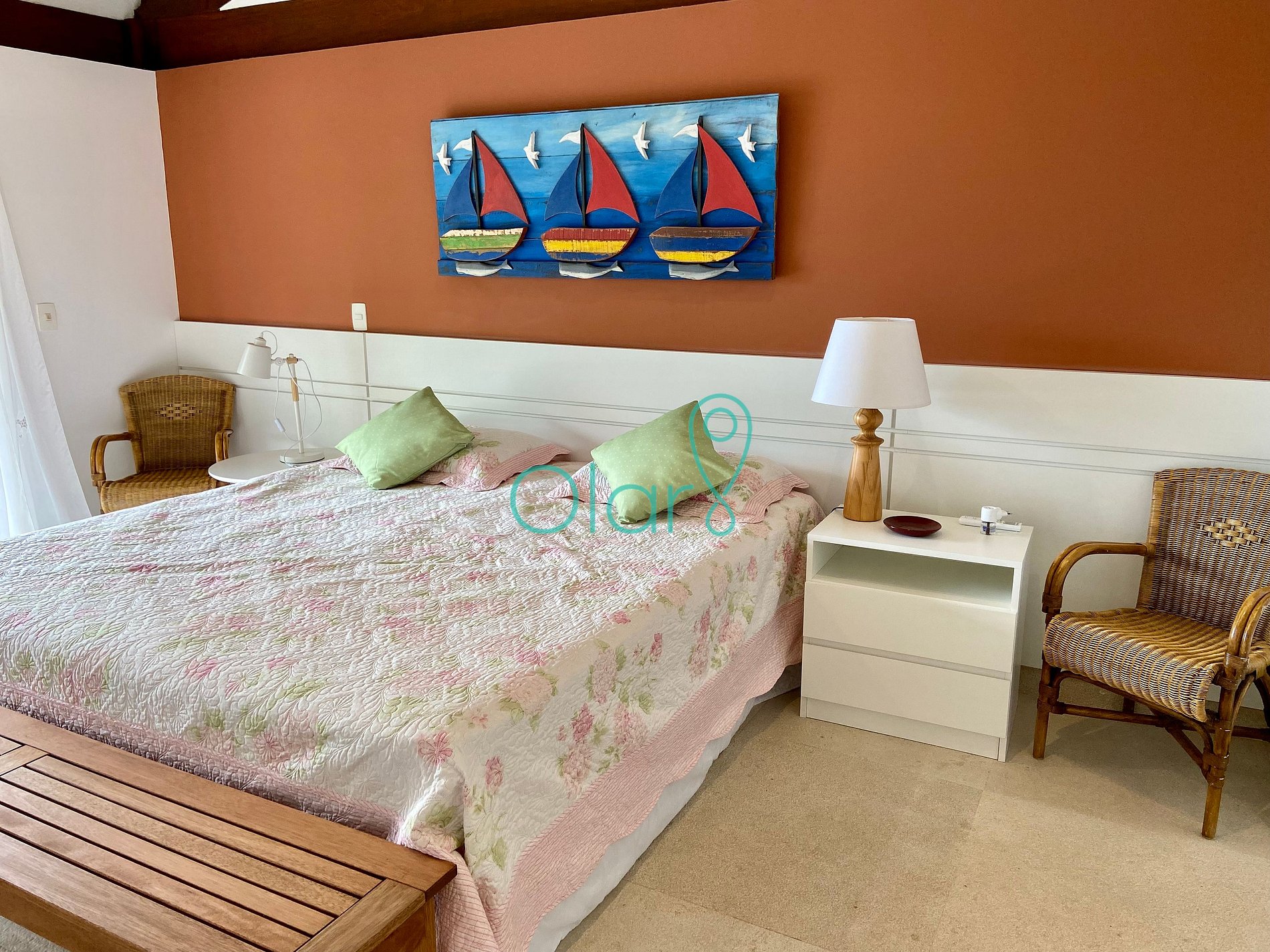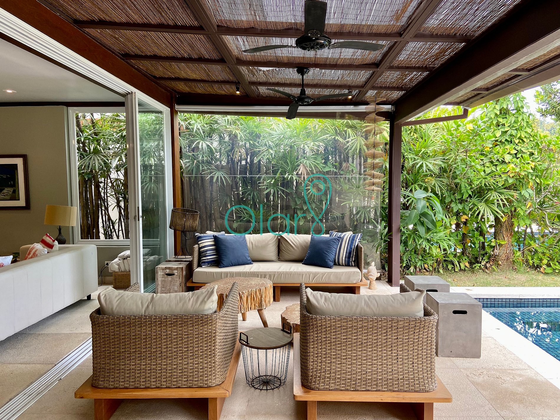 Todas as 4 suítes possuem ar condicionado e a sala e varanda são equipadas com ventiladores de teto.
