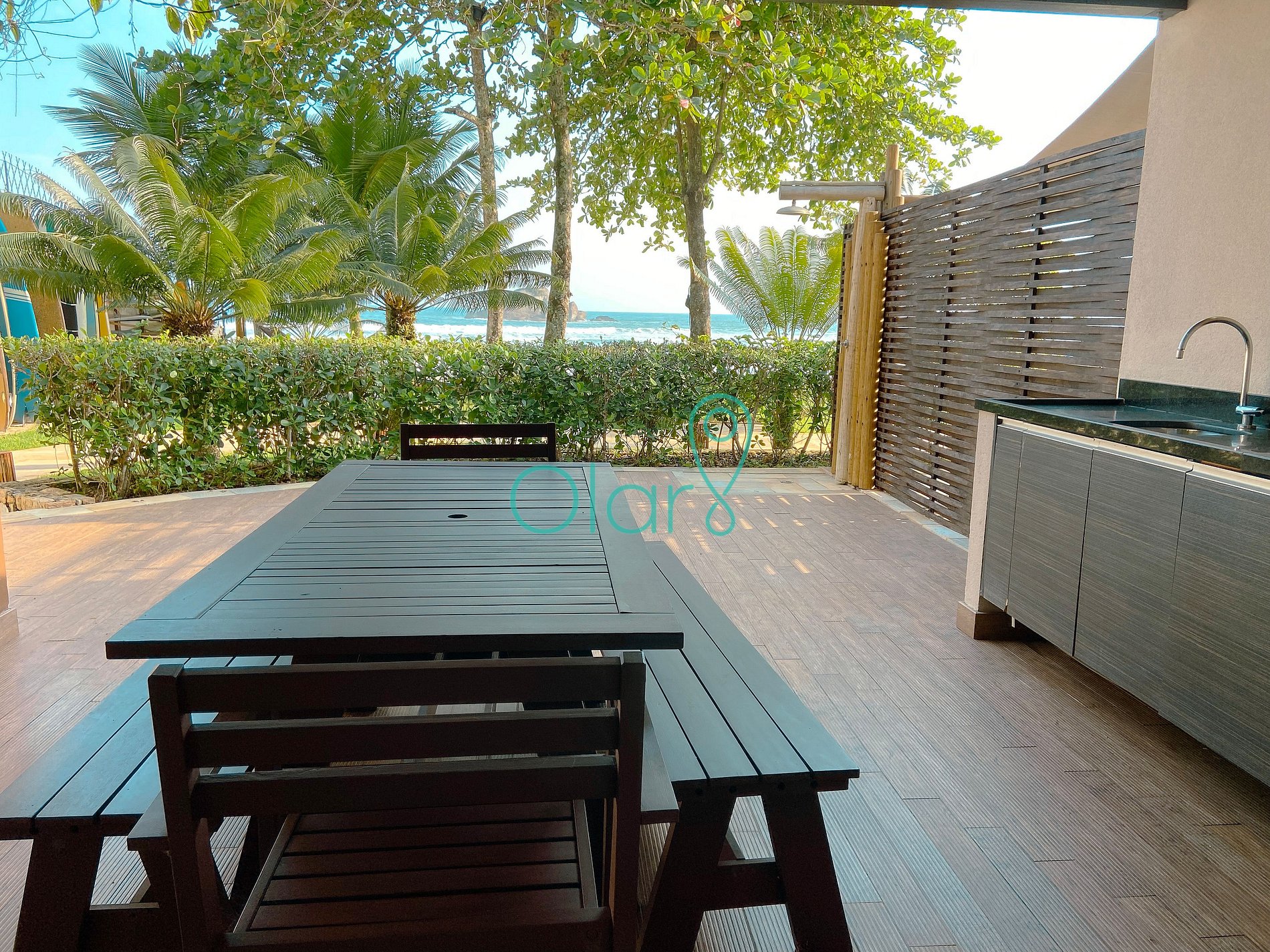 A casa fica em um condomínio exclusivo com apenas 12 residências, frente ao mar. Sauna e Jacuzzi com vista para praia. Serviço de praia (tendas e cadeiras permanentemente montadas)