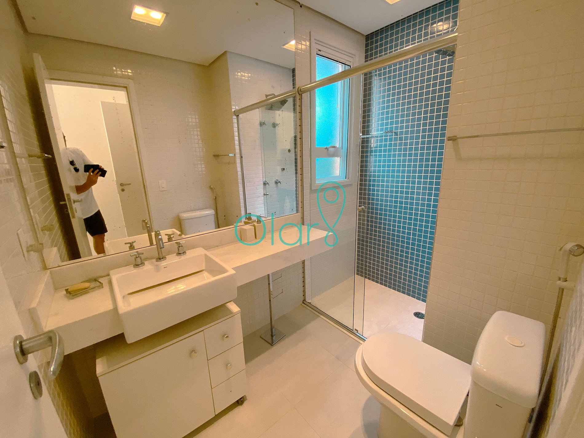 Quatro suítes + banheiro completo na sala, ar condicionado, wi fi, TV com netflix e outros canais streaming.