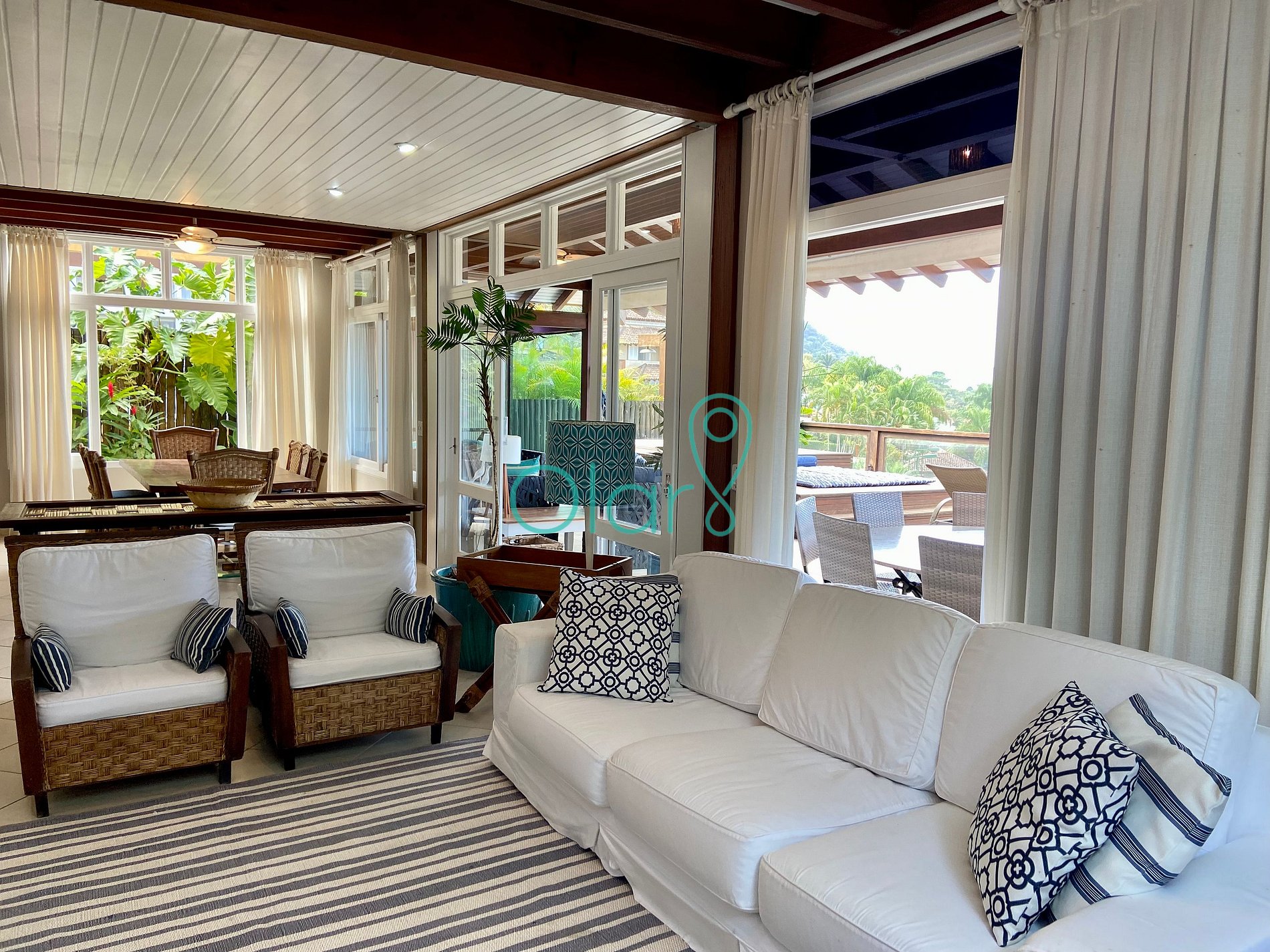Casa ampla e espaçosa com 5 suítes em condomínio com lazer completo a 200m da praia em Juquehy. É uma típica casa de praia, aconchegante e arejada, tendo a sala e varanda integradas em um grande ambiente de convívio familiar. Possui uma suíte no térreo e as outras 4 no pavimento superior.