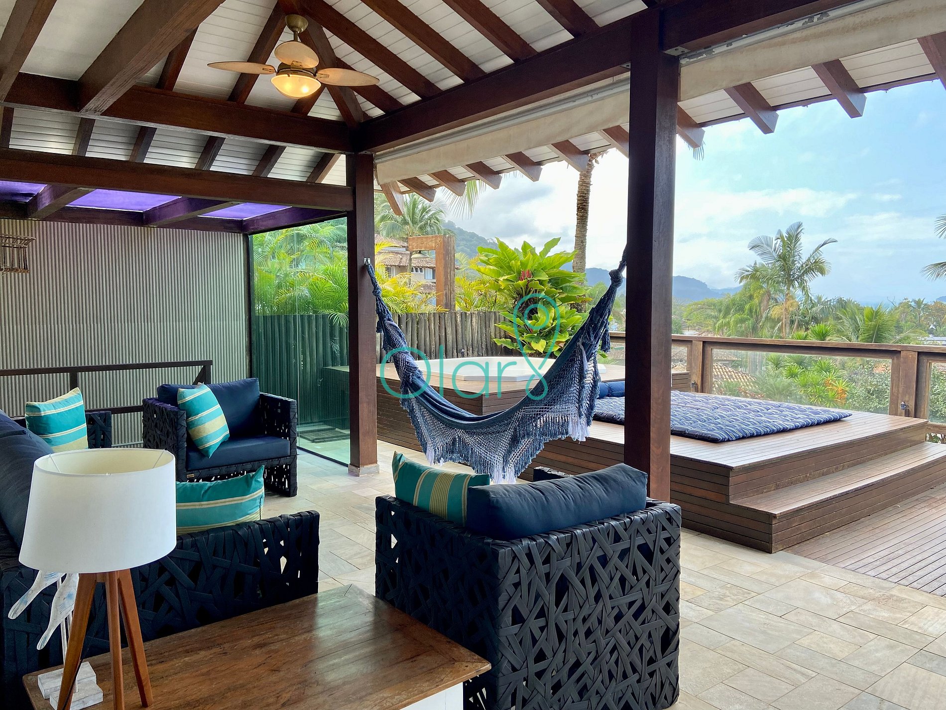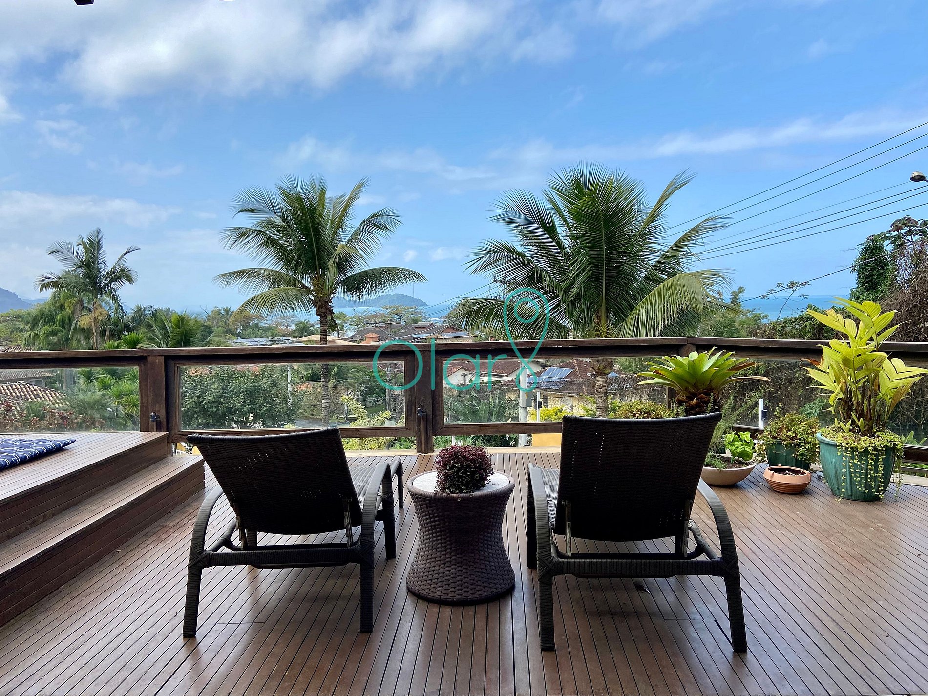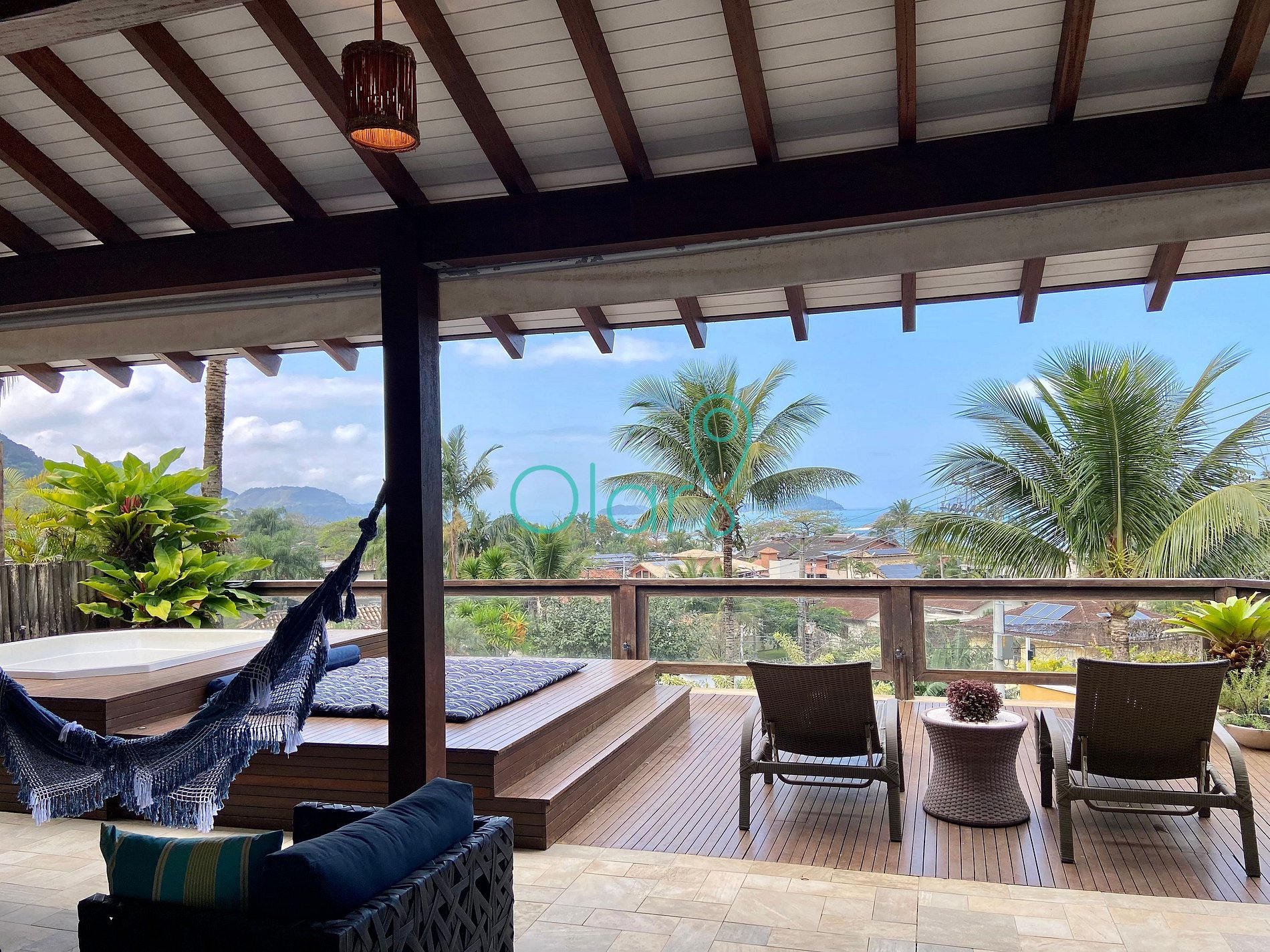 - Deck com vista para o mar com uma jacuzzi, futon e duas espreguiçadeiras.