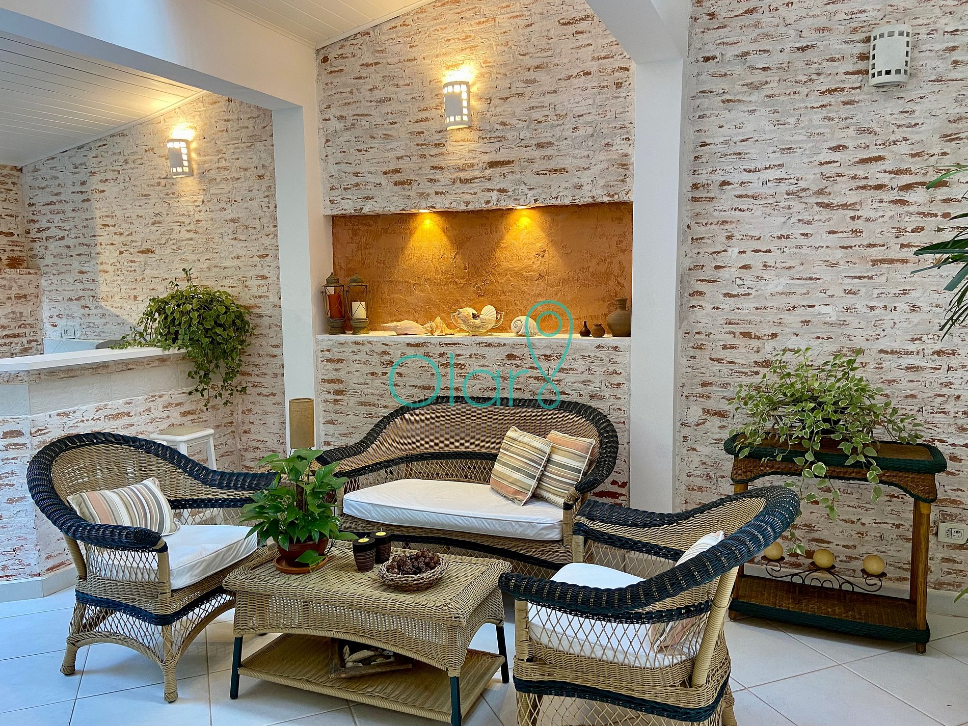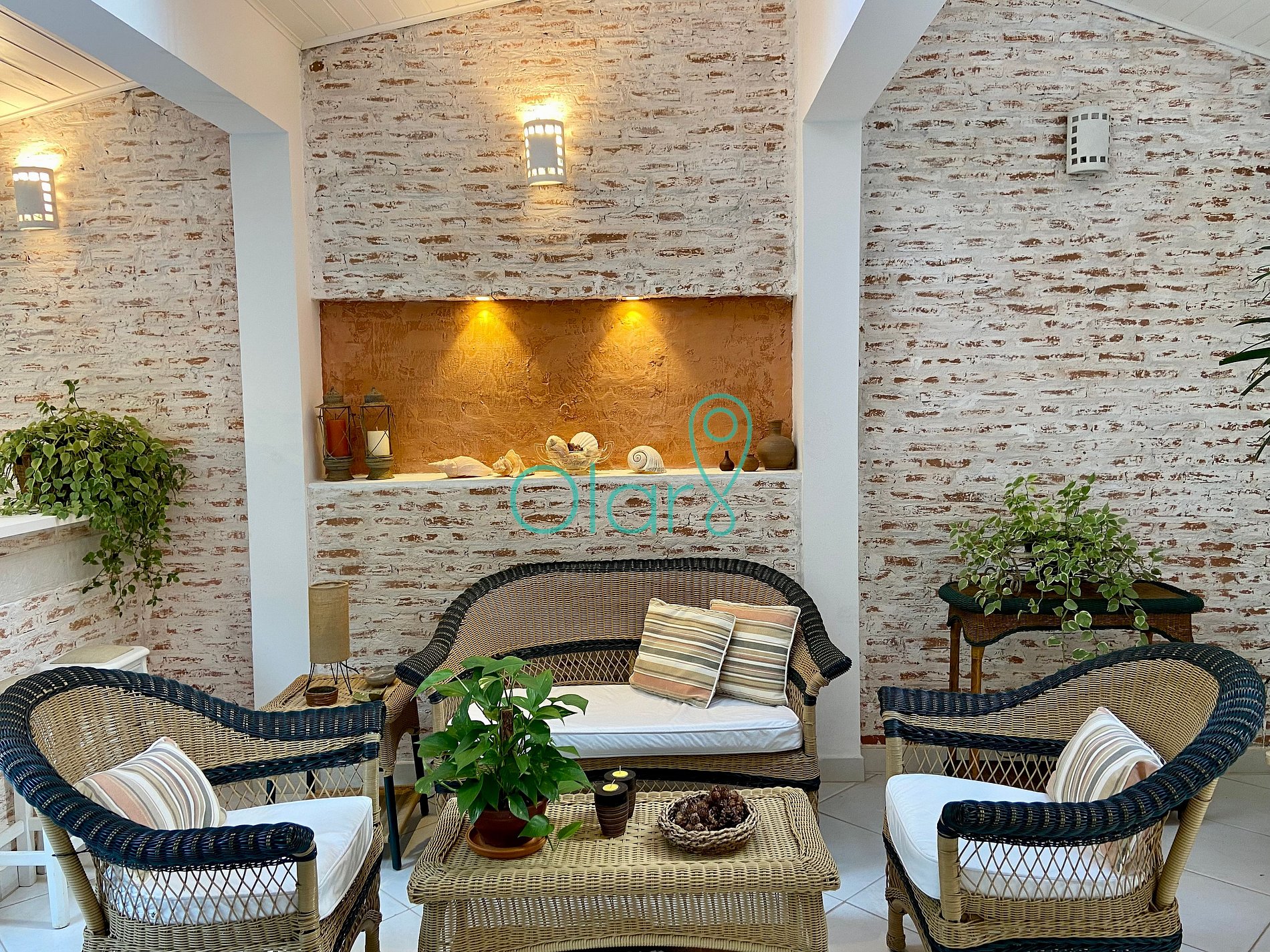 - Área de Estar: Três poltronas e uma mesa de centro