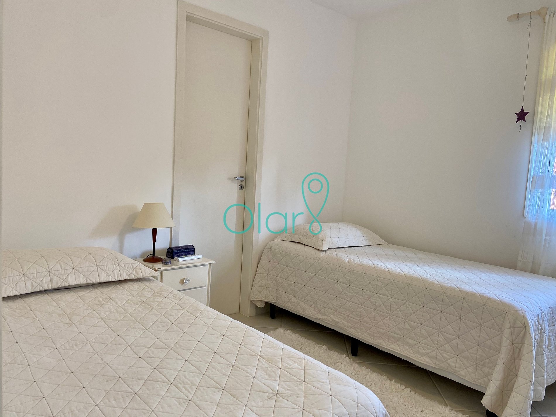 Casa muito bem decorada e equipada, com 4 suítes sendo uma térrea e três no pavimento superior. Fica no canto direito de Juquehy, ao lado do restaurante Badauê. O condomínio oferece quadra de tênis, uma piscina com deck e vista para o mar. O grande diferencial é o apoio de praia, localizado em uma área pé na areia privativa do condomínio, com cadeiras, tendas, parquinho para crianças, churrasqueira e banheiros.