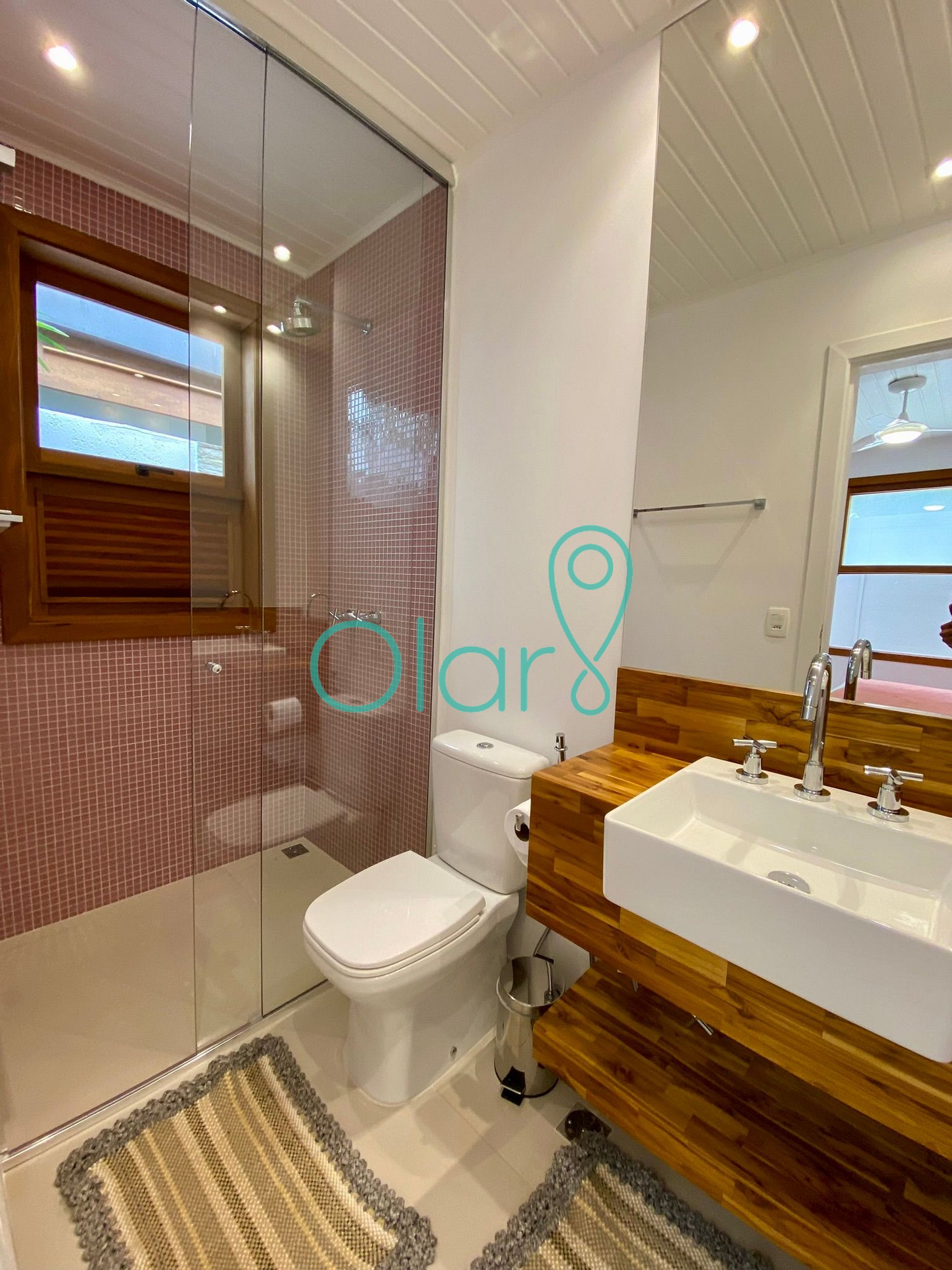 Além dos banheiros que atendem as quatro suítes, possui um banheiro na sala, totalizando 5 banheiros ao todo na casa.