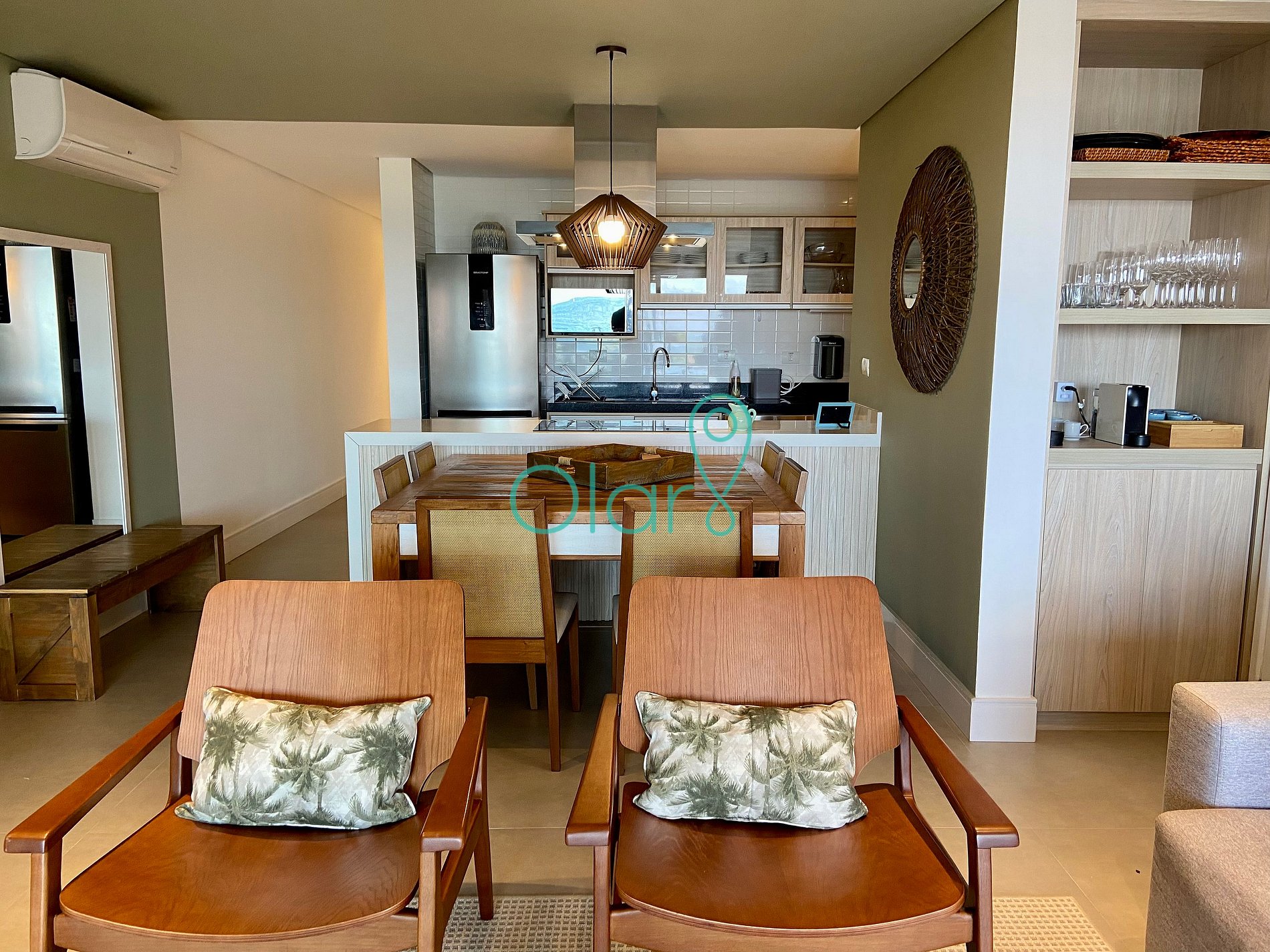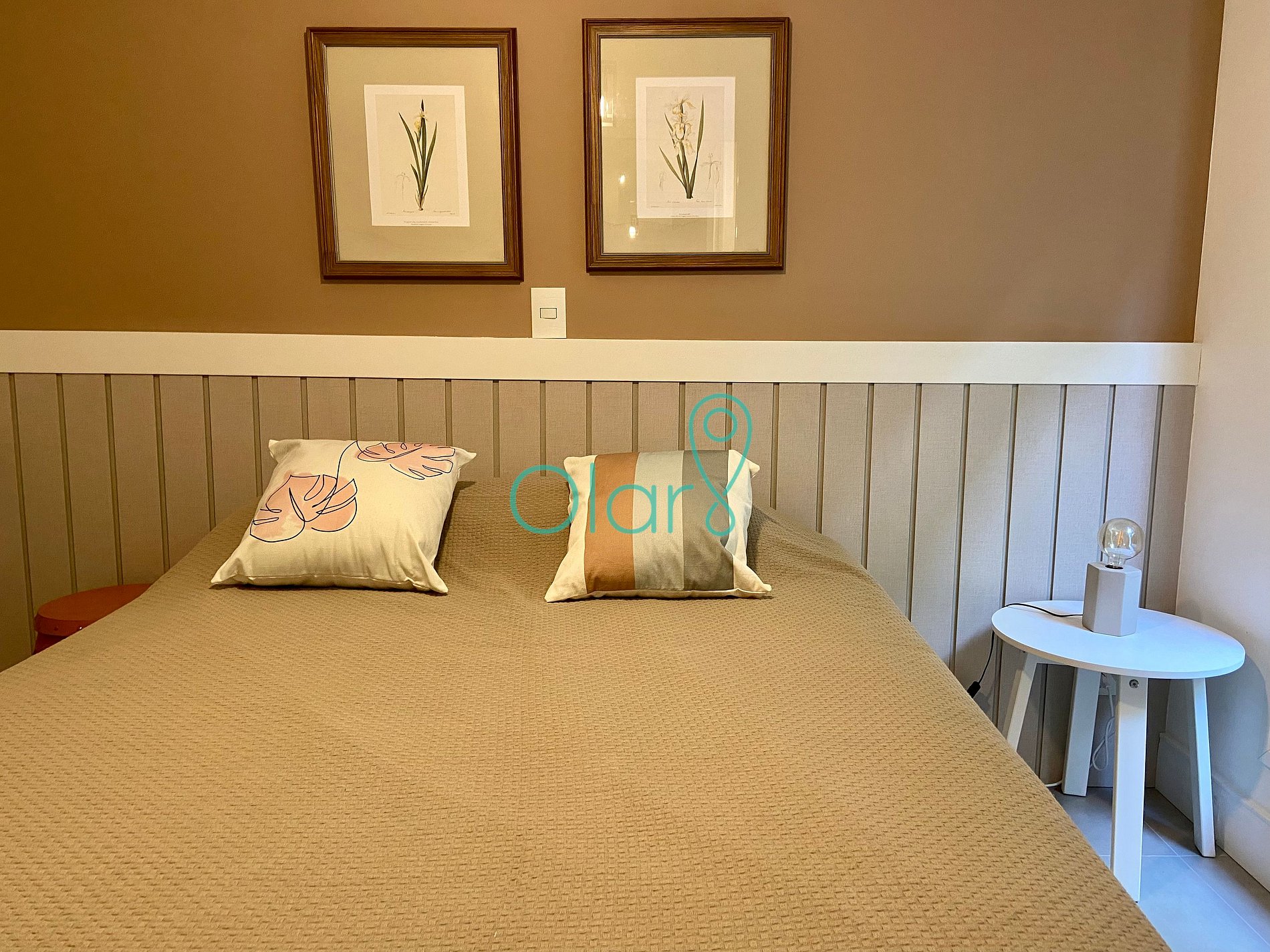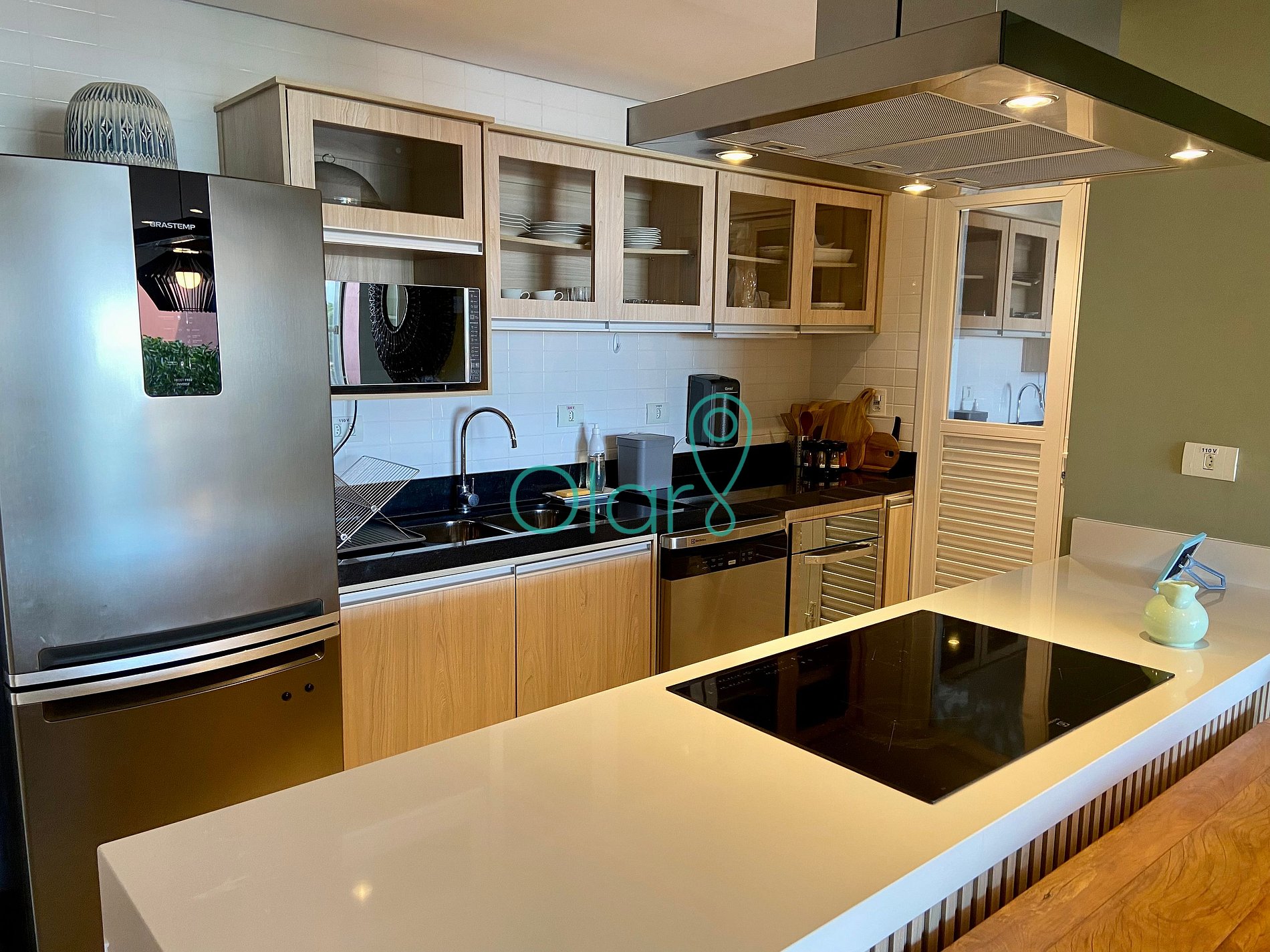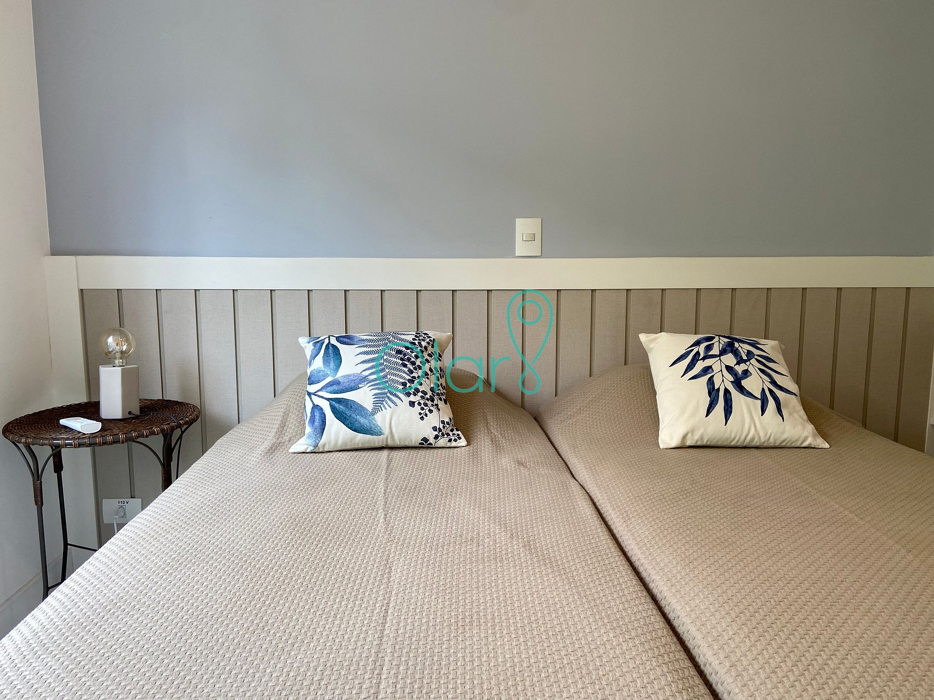 Sala: ar condicionado, mesa de jantar, smartTV, sofá 4 lugares, 2 poltronas.