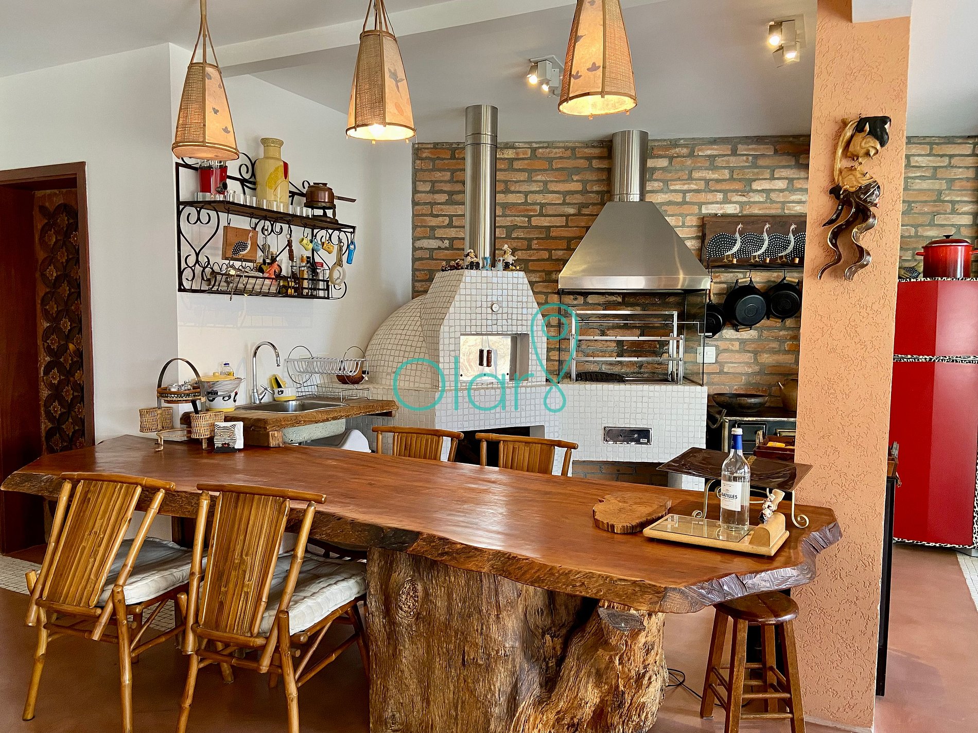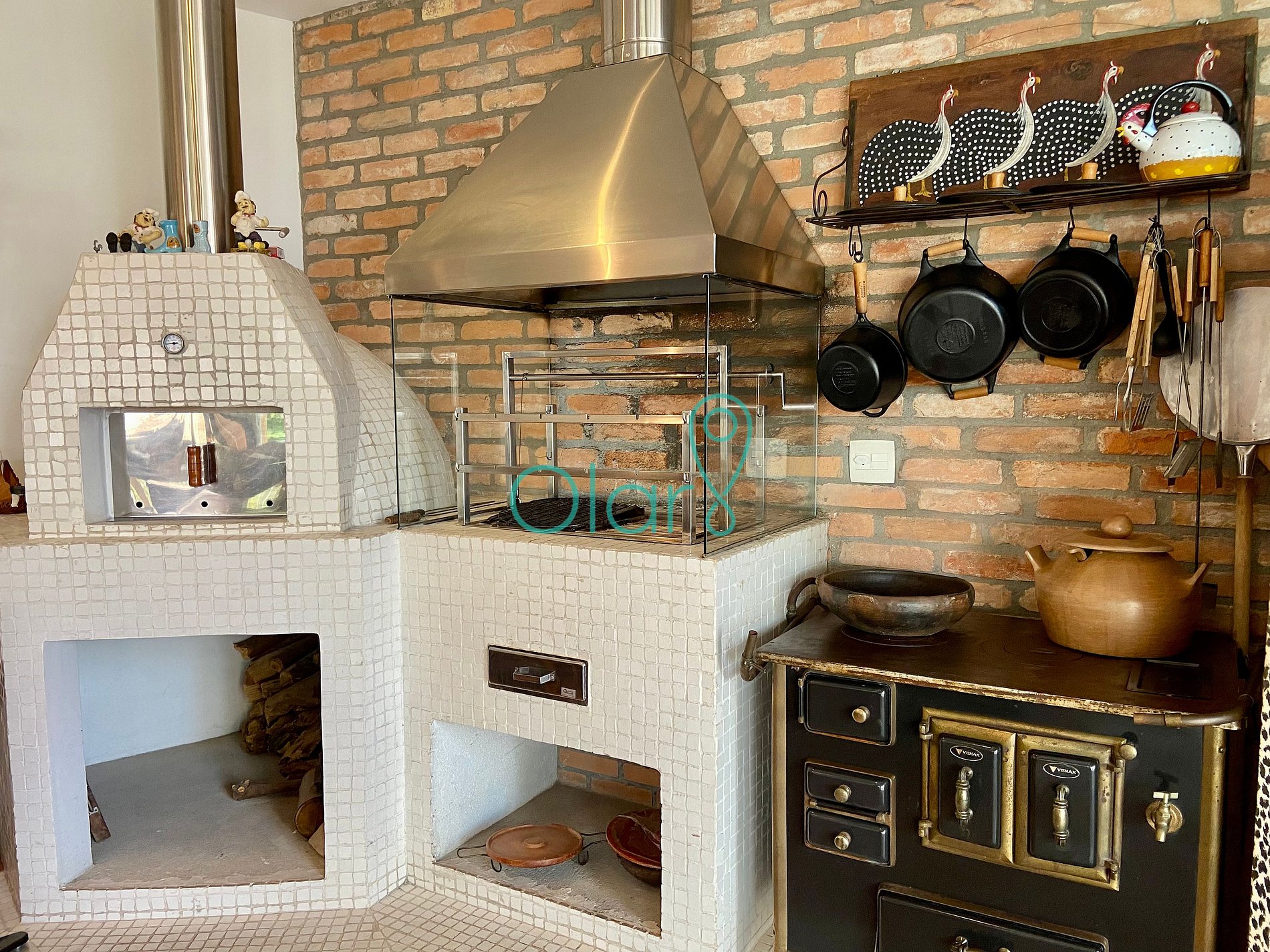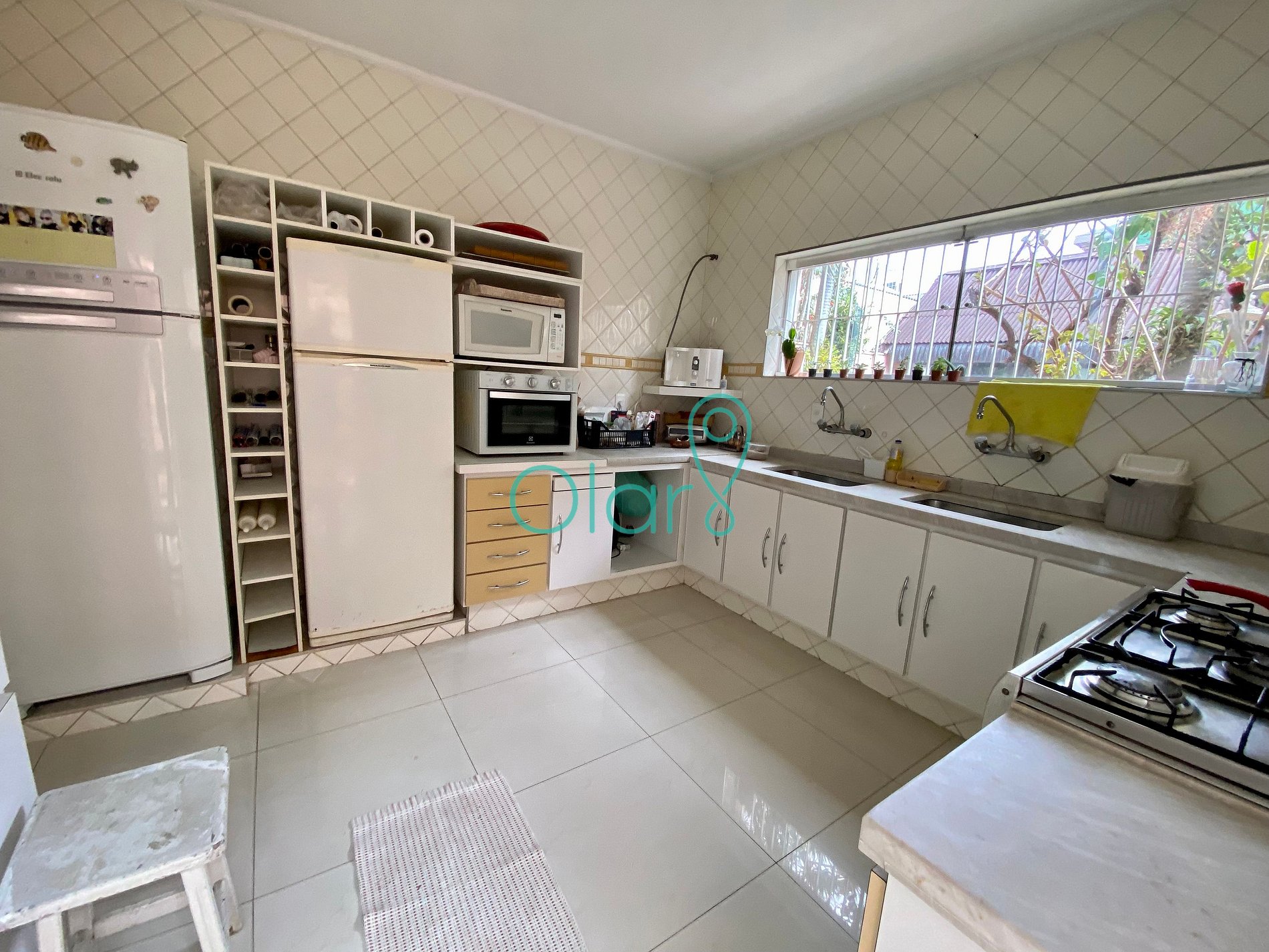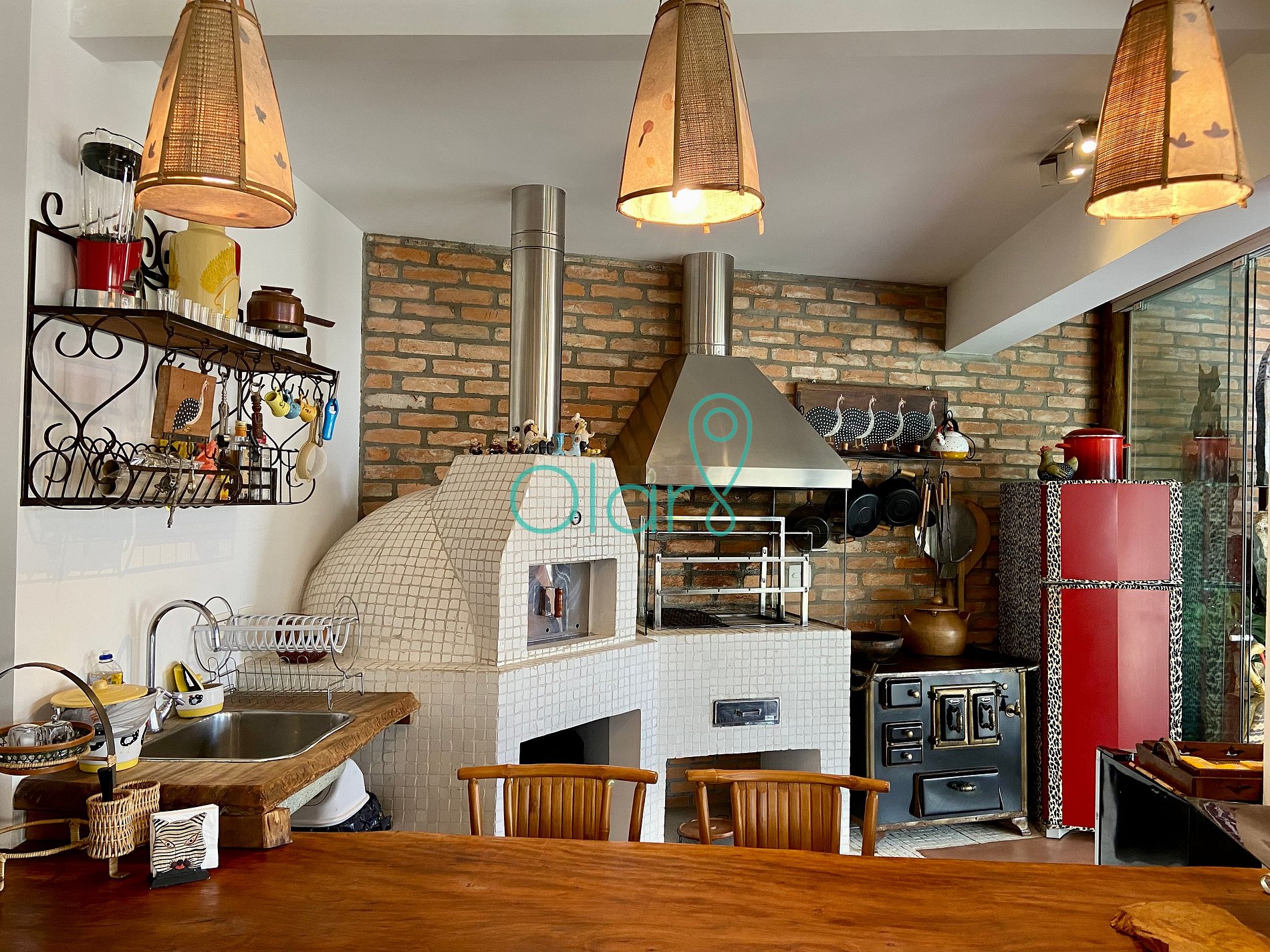 A cozinha é equipada com 2 geladeiras, filtro de água potável, torradeira, sanduicheira, liquidificador, micro-ondas, fogão com 5 bocas, cafeteira elétrica e máquina Nespresso.